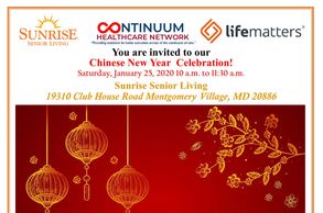 Join us in celebrating the most important festival in the Chinese Calendar -Chinese New Year!- Sunrise Senior Living Montgomery Village is hosting a weekend of activities and entertainment in honor of our special guests from the Chinese Culture and Community Service Center. Inc (CCACC), Asian American Chamber of Commerce, Montgomery Village Seniors Association, and City of Gaithersburg Senior Association. There will be lots of food, Chinese cultural performances, and entertainment.